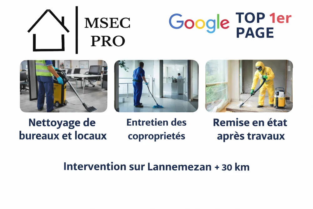 Chez MSEC PRO, nous comprenons l'importance d'un environnement de travail propre et bien entretenu. Notre service de nettoyage de bureaux à Lannemezan inclut un dépoussiérage minutieux, le lavage des sols et le vidage des poubelles. Nous nous occupons également de l'entretien de vos sanitaires pour garantir un espace de travail sain et agréable.