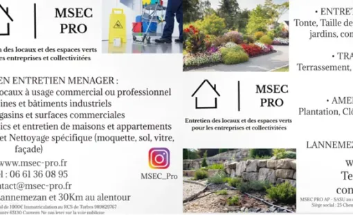 MSEC PRO, Service d'entretien ménager et paysager à Lannemezan, met à votre disposition des prestations professionnelles pour garantir la propreté et l’hygiène de vos espaces de vie et de travail.